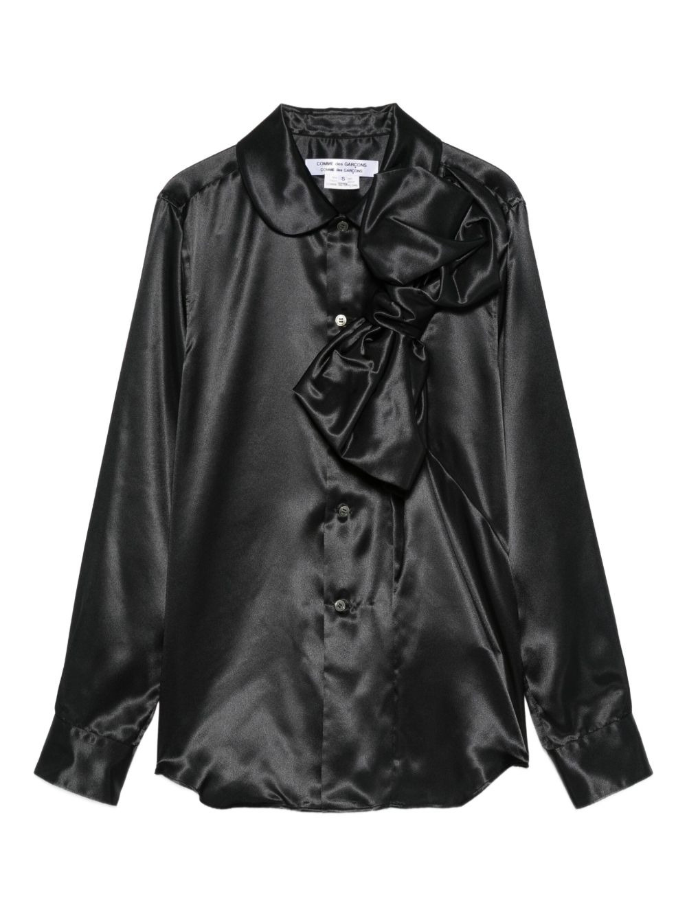 satin shirt Highlights - Black - Bow embellishment - Button front fastening Imported Composition Polyester 100% Washing instructions Read Manufacturer Guidelines