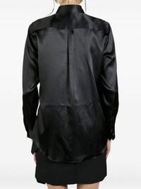 satin shirt Highlights - Black - Front button fastening - Long sleeves - Ruffled trim Imported Composition Polyester 100%