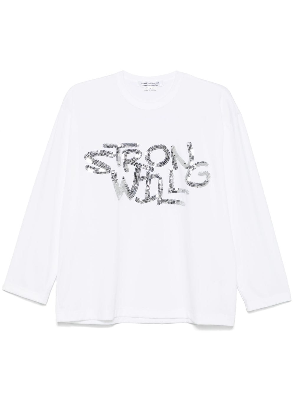 sequin-embellished T-shirt Highlights - White - Jersey texture - 'strong will' sequin embellishment - Crew neck - Long sleeves - Straight hem Imported Composition Polyester 100% Washing instructions Hand Wash