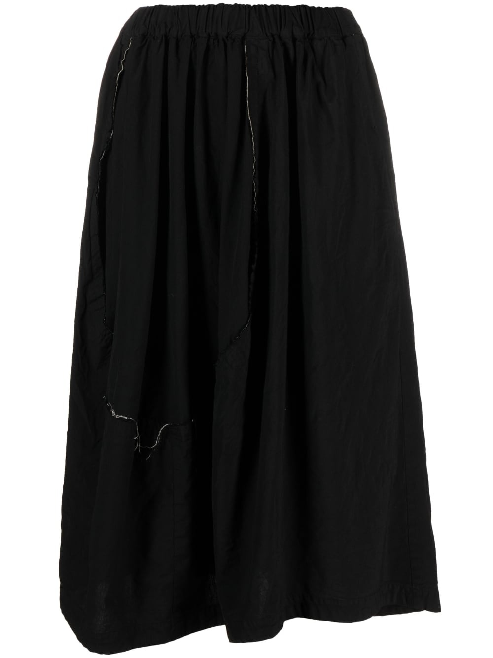 topstitched asymmetric midi skirt The irregular topstitching on this skirt point to Comme Des Garcons Comme Des Garcons' faible for the unfinished — the white shade makes the detailing stand out even more from the black backdrop. Highlights - Black - High-waisted - Contrast thread detail - Elasticated waistband - Mid-calf length - Asymmetric hem Imported Composition Outer: Polyester 100% SIZE & FIT Model measurements Height 5 ft 10 in(1.78 m) Bust/Chest 29.92 in(76 cm) Hips 34.64 in(88 cm) Waist 23.62 in(60 cm) FittingInformation This midi-length skirt is intended to be worn high on the waist The elasticated waist allows for a comfortable fit Made from a midweight non-stretch fabric This piece fits true to size – take your usual size Washing instructions Hand Wash