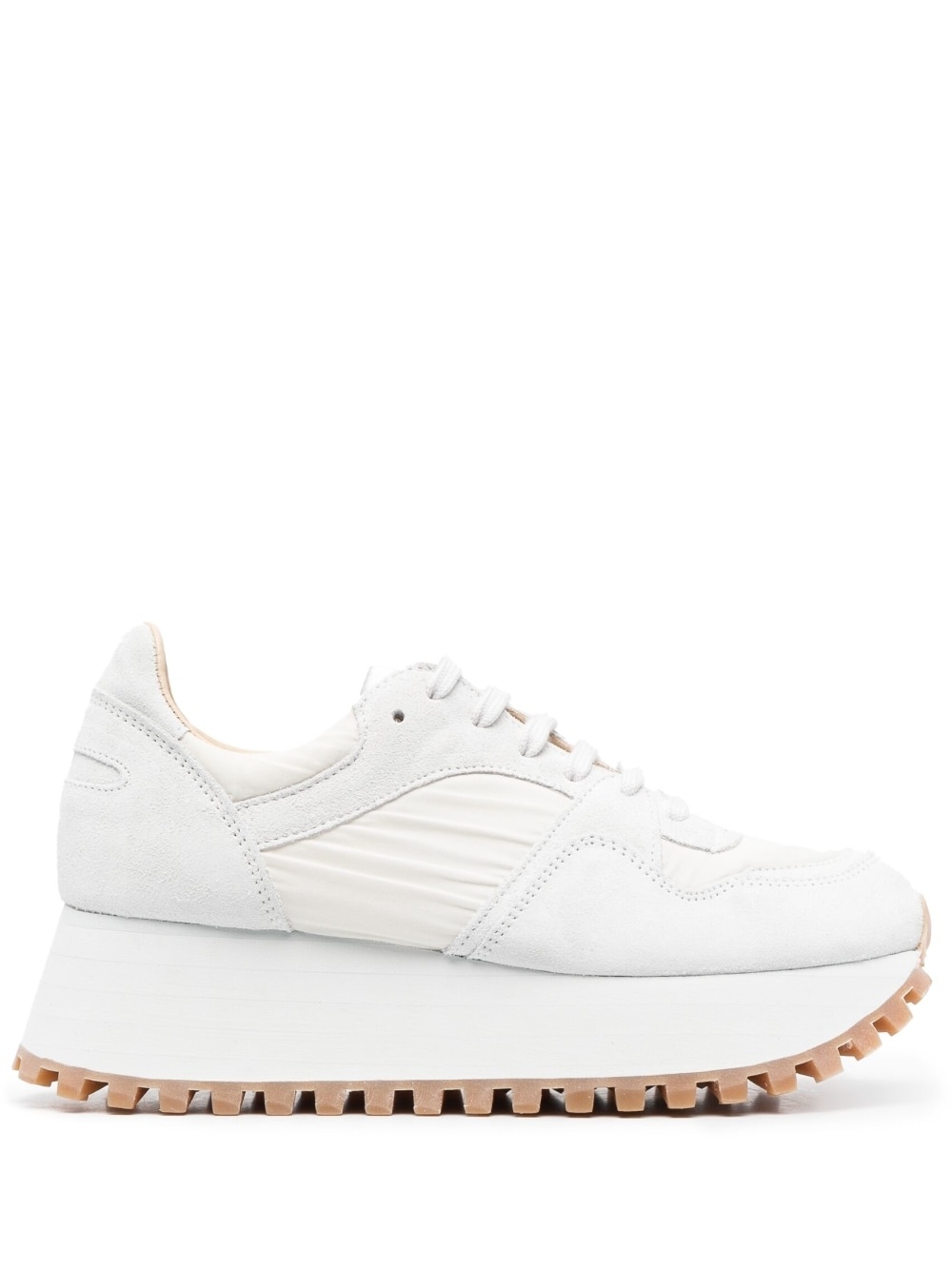 x Spalwart platform panelled sneakers off-white calf leather/suede panelled design front lace-up fastening logo patch at the tongue branded insole platform sole Imported Composition Sole: Synthetic Rubber 100% Outer: Calf Leather 100%, Polyester 100% Lining: Calf Leather 100% SIZE & FIT Measurement HEEL 1.96 in(5 cm) Sole height 1.37 in(3.5 cm)