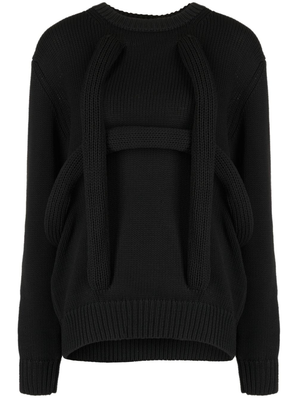 crew-neck drop-shoulder jumper Highlights - Black - Knitted construction - Crew neck - Drop shoulder - Long sleeves - Ribbed cuffs and hem Imported Composition Polyester 100% SIZE & FIT Model measurements Height 5 ft 9 in(1.76 m) Bust/Chest 31.1 in(79 cm) Hips 35.03 in(89 cm) Waist 24.4 in(62 cm) Measurement SLEEVE LENGTH 24.4 in(62 cm) LENGTH 25.59 in(65 cm) BUST 40.94 in(104 cm) Shoulder Width 17.32 in(44 cm) FittingInformation Designed to be unstructured, offering a loose fit throughout The ribbed hem offers a close, comfortable fit Made with a heavyweight knit, this piece offers some stretch This piece fits true to size – take your usual size