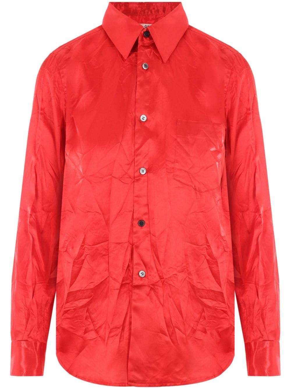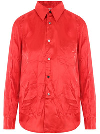 crinkled long-sleeve shirt Highlights - Red - Crinkled finish - Straight-point collar - Front button fastening - Long sleeves - Buttoned cuffs - Chest patch pocket - Curved hem Imported Composition Polyester 100%