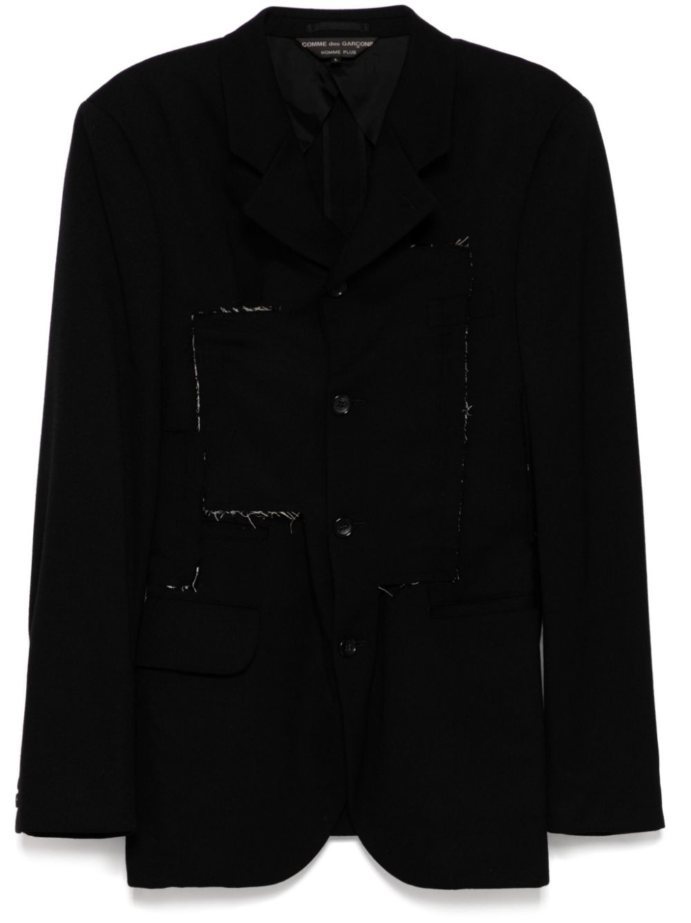 distressed detail blazer Highlights - Black - Wool blend - Notched lapels - Distressed finish - Front button fastening - Chest welt pocket - Two front welt pockets - Front flap pocket - Shoulder pads - Long sleeves - Long sleeves Imported Composition Outer: Wool 97%, Polyurethane 3% Lining: Cupro 100% SIZE & FIT Model measurements Height 6 ft 2 in(1.88 m) Bust/Chest 34.25 in(87 cm) Hips 34.64 in(88 cm) Waist 26.77 in(68 cm) FittingInformation Designed for a slim fit, offering a comfortable fit that sits just away from the body The internal shoulder pads offer a structured shape Made from a midweight non-stretch fabric
