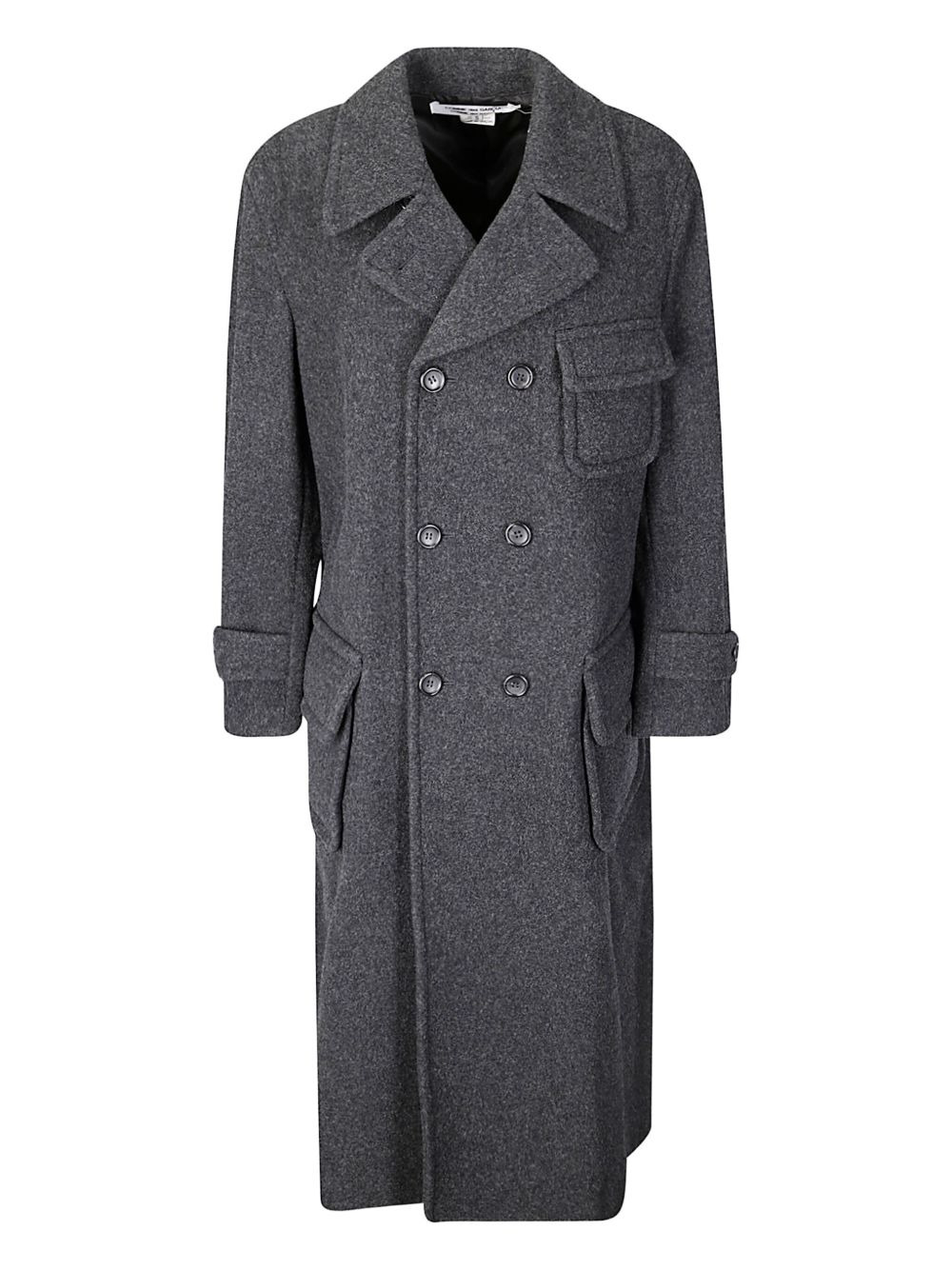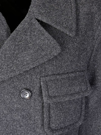 double-breasted coat Highlights - Charcoal grey - Double-breasted button fastening - Notched lapels - Front flap pockets - Long sleeves Imported Composition Wool 90%, Nylon 10% Washing instructions Read Manufacturer Guidelines