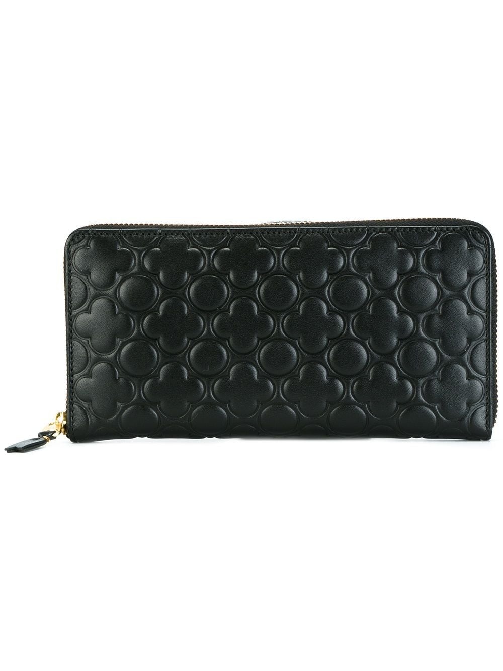 embossed elongated wallet Black calf leather embossed elongated wallet from Comme Des Garcons Wallet. Imported Composition Calf Leather 100% SIZE & FIT Measurement WIDTH 7.87 in(20 cm) LENGTH 3.93 in(10 cm) DEPTH 0.78 in(2 cm)