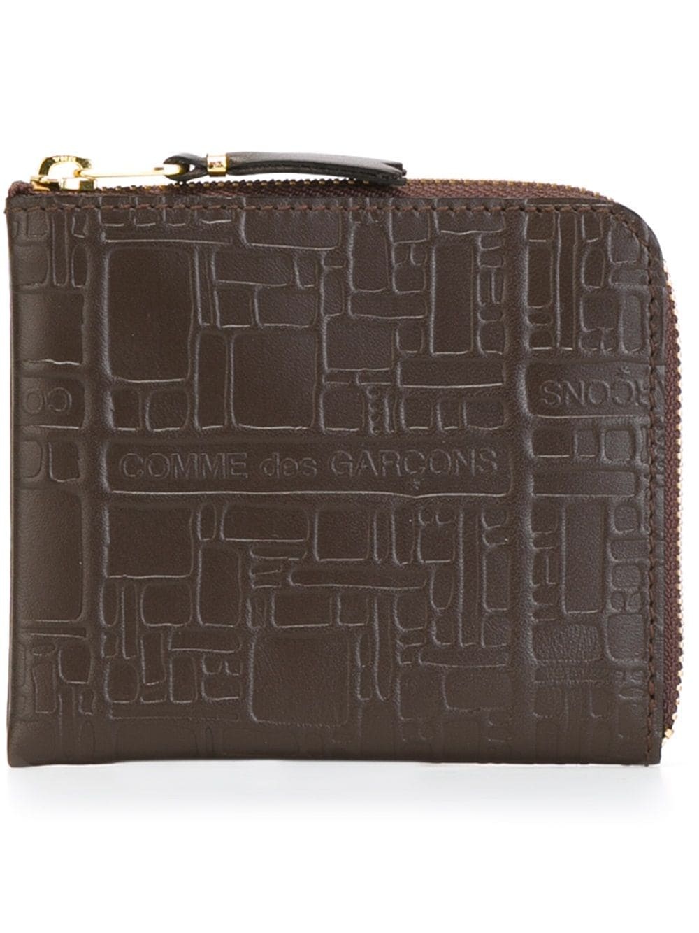 'Embossed Logo' wallet Brown calf leather 'Embossed Logo' wallet from Comme Des Garcons Wallet featuring an all around zip fastening. This item is unisex. Imported Composition Outer: Calf Leather 100% SIZE & FIT Measurement WIDTH 4.33 in(11 cm) LENGTH 3.93 in(10 cm)