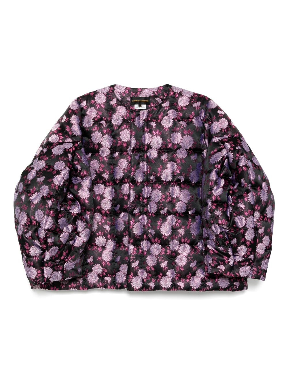 floral detail puffer jacket Highlights - Black - Concealed front press-stud fastening - Rounded collar - Two side slit pockets Imported Composition Outer: Polyester 100% Lining: Cupro 100% SIZE & FIT Model measurements Height 5 ft 11 in(1.8 m) Bust/Chest 30.7 in(78 cm) Hips 36.22 in(92 cm) Waist 25.19 in(64 cm) FittingInformation Designed for an oversized fit, offering additional room throughout Made from a padded non-stretch fabric, giving it no natural elasticity