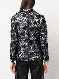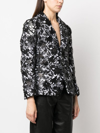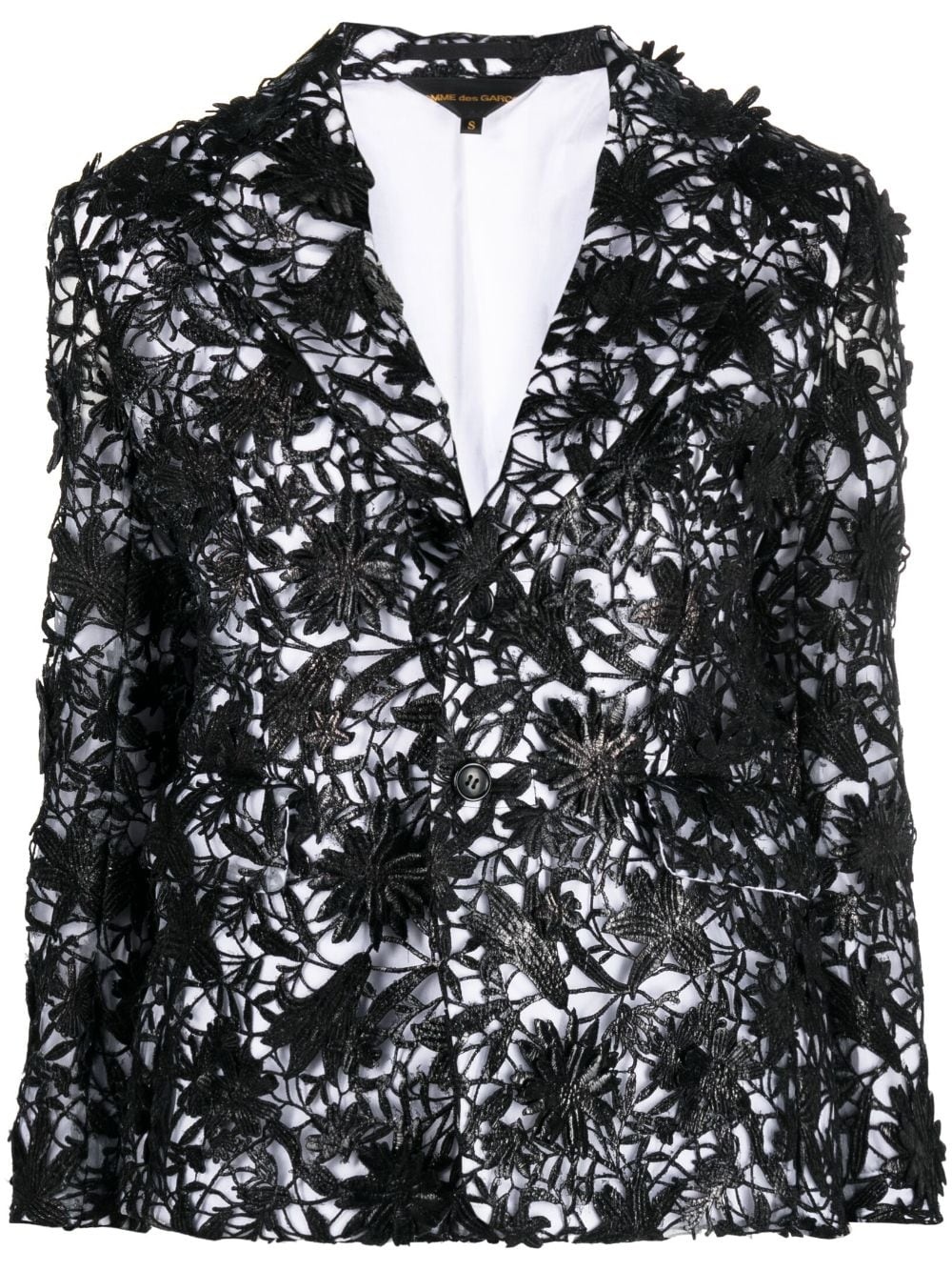 floral-lace single-breasted blazer Highlights - Black/white - Cotton - Floral-lace detailing - Notched lapels - Front button fastening - Long sleeves - Cuff sleeves - Full lining - American rear vent Imported Composition Lining: Cotton 100% Outer: Polyester 96%, Polyurethane 4% SIZE & FIT Model measurements Height 5 ft 11 in(1.8 m) Bust/Chest 31.49 in(80 cm) Hips 36.22 in(92 cm) Waist 25.59 in(65 cm) FittingInformation Designed for a slim fit that sits just away from the body offering a close yet comfortable fit Made from a midweight non-stretch fabric This piece fits true to size – take your usual size Washing instructions Dry Clean Only