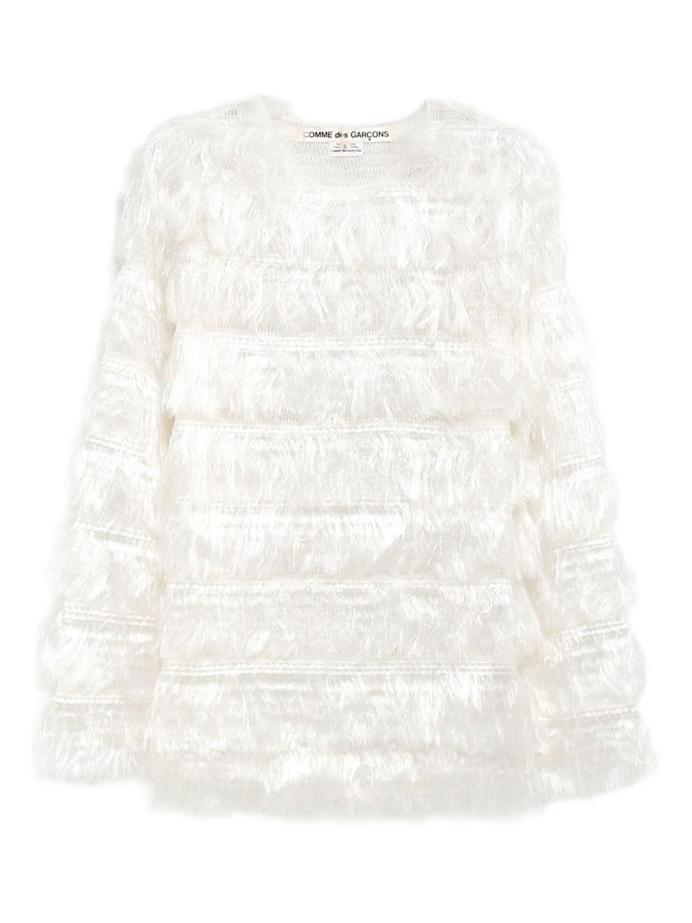 fringed T-shirt Highlights - White - Fringe detailing - Crew neck - Long sleeves Imported Composition Cotton 60%, Rayon 40%
