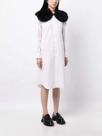 fur-collar midi shirtdress Highlights - White/black - Cotton - Faux-fur collar - Front button fastening - Long sleeves - Buttoned cuffs - Chest patch pocket - Curved hem - Knee-length Imported Composition Acrylic 100% Outer: Cotton 100% Base: Polyester 100% Lining: Cupro 100% SIZE & FIT Model measurements Height 5 ft 10 in(1.77 m) Bust/Chest 28.74 in(73 cm) Hips 35.82 in(91 cm) Waist 24.4 in(62 cm) FittingInformation Designed for a slim fit that sits just away from the body offering a close yet comfortable fit Made from a midweight non-stretch fabric This piece fits true to size – take your usual size Washing instructions Dry Clean Only