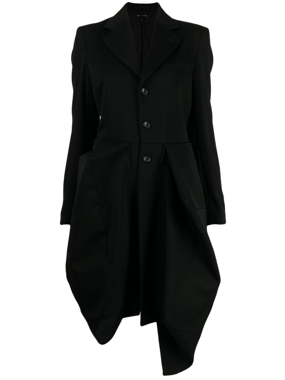 gathered asymmetric single-breasted coat Highlights - Black - Wool - Gathered detailing - Notched lapels - Front button fastening - Long sleeves - Buttoned cuffs - Chest welt pocket - Asymmetric hem - Above-knee length Imported Composition Outer: Acrylic 55%, Polyester 45% Base: Acrylic 100% Lining: Cupro 100% SIZE & FIT Model measurements Height 5 ft 11 in(1.8 m) Bust/Chest 35.03 in(89 cm) Hips 35.03 in(89 cm) Waist 23.62 in(60 cm) FittingInformation This midi-length skirt is intended to be worn just below the waist The elasticated waist allows for a comfortable fit Made from a heavyweight non-stretch fabric This piece fits true to size – take your usual size