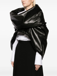 gathered blouse Highlights - Black - Faux leather - High-shine finish - Gathered detailing - Cowl neck - Pull-on style - Cape design Imported Composition Lining: Polyester 100% Outer: Polyurethane 100% SIZE & FIT Model measurements Height 5 ft 9 in(1.76 m) Bust/Chest 31.1 in(79 cm) Hips 35.03 in(89 cm) Waist 24.4 in(62 cm) FittingInformation Designed to be unstructured, offering a loose fit throughout Made from a midweight non-stretch fabric