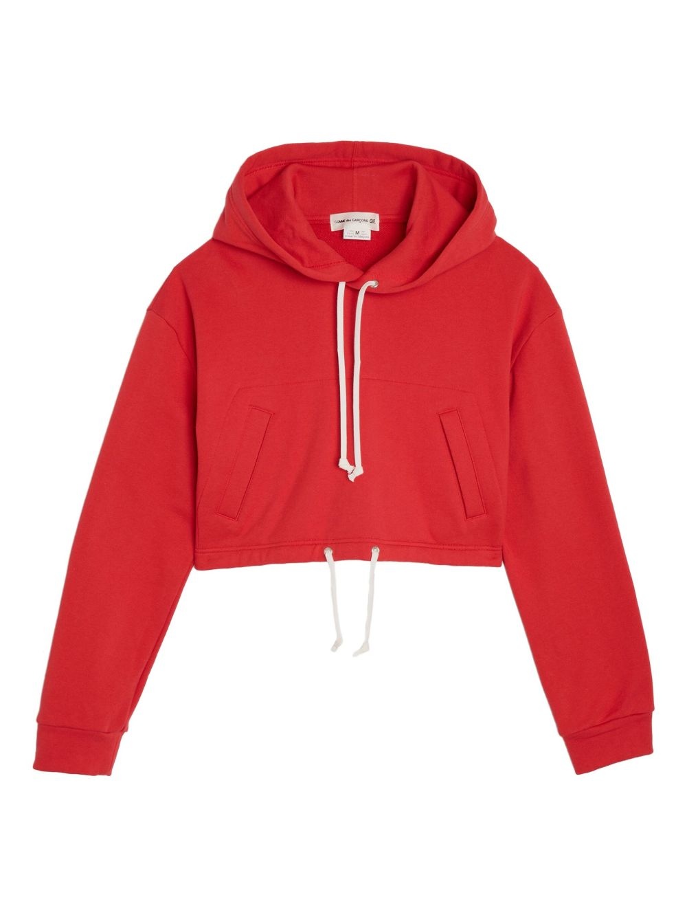 cotton cropped hoodie Highlights - Poppy red - Drawstring hood - Two side welt pockets - Drawstring hem - Ribbed cuffs Imported Composition Cotton 100%