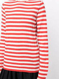 striped wool-blend jumper Comme des Garcons Girl's playful approach to colour and prints is captured in this jumper, which is woven with a touch of wool in Japan and elevated with white and bright-red stripes. Highlights - White/red - Wool blend - Horizontal stripe pattern - Crew neck - Long sleeves - Ribbed cuffs and hem Imported Composition Acrylic 70%, Wool 30% SIZE & FIT Model measurements Height 5 ft 9 in(1.76 m) Bust/Chest 33.46 in(85 cm) Hips 37 in(94 cm) Waist 23.62 in(60 cm) Measurement BUST 35.43 in(90 cm) LENGTH 25.59 in(65 cm) SLEEVE LENGTH 24.8 in(63 cm) Shoulder Width 14.56 in(37 cm) FittingInformation Designed to be unstructured, offering a loose fit throughout Made with a lightweight knit, this piece offers some stretch This piece fits true to size – take your usual size Washing instructions Dry Clean Only