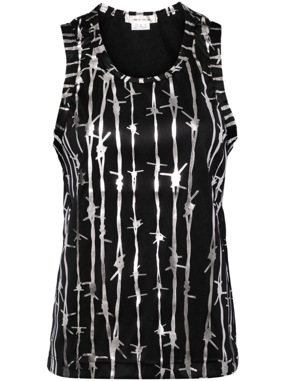 graphic-printed vest Highlights - Black/silver-tone - Jersey texture - All-over graphic print - Crew neck - Sleeveless - Straight hem Imported Composition Polyester 100%
