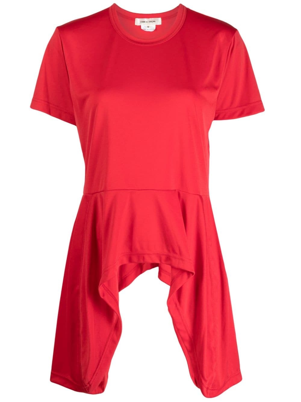 high-low hem panelled T-shirt Highlights - Scarlet - Panelled design - Round neck - Short sleeves - High-low hem Imported Composition Polyester 100% SIZE & FIT Model measurements Height 5 ft 9 in(1.76 m) Bust/Chest 31.1 in(79 cm) Hips 35.03 in(89 cm) Waist 24.4 in(62 cm) FittingInformation Designed to be unstructured, offering a loose fit throughout Made from a midweight non-stretch fabric, this piece offers minimal elasticity when worn This piece fits true to size – take your usual size Washing instructions Hand Wash
