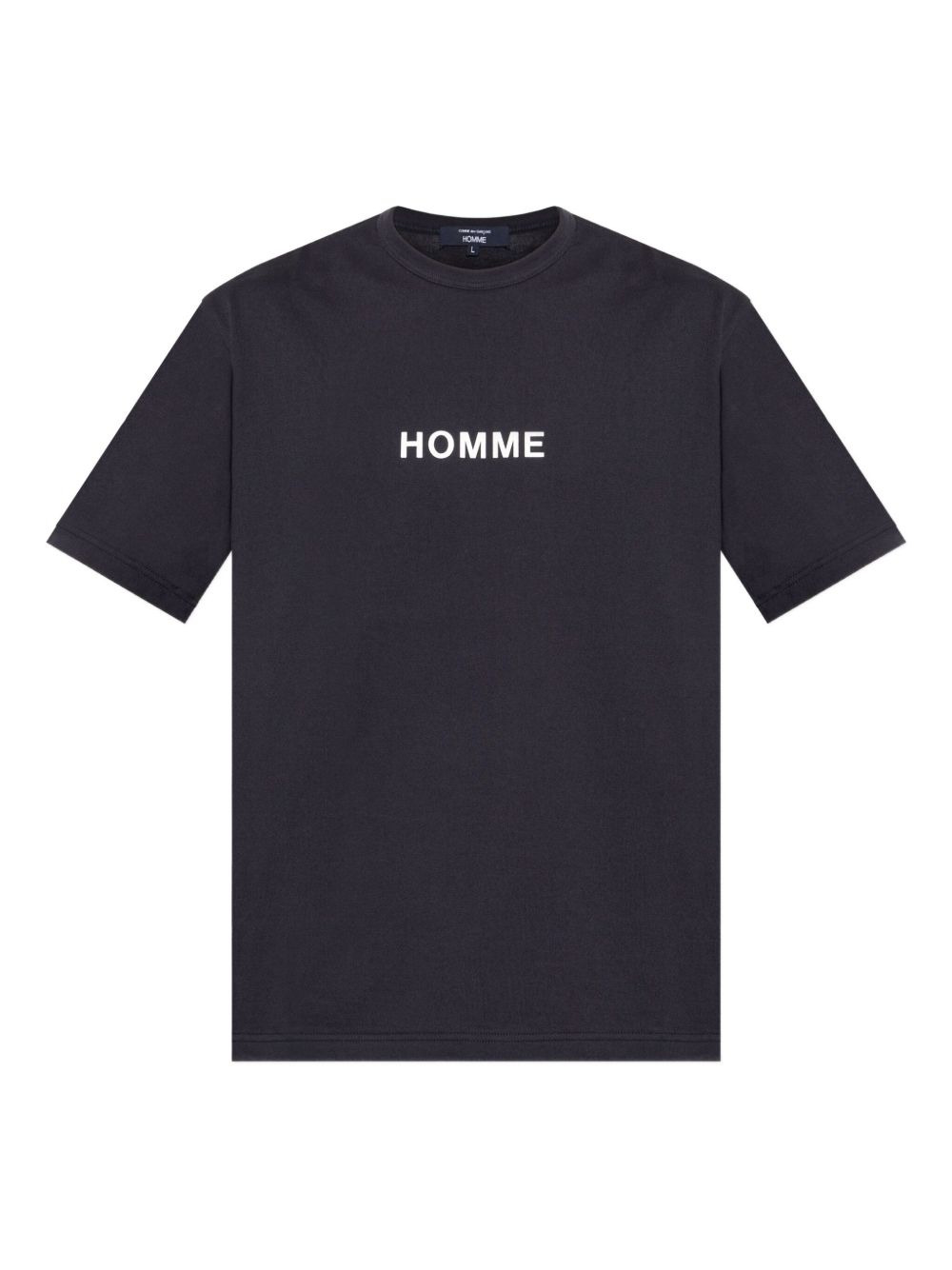 cotton T-shirt Highlights - Dark blue - Short sleeves - Crew neck - Cotton - Homme lettering Imported Composition Outer: Cotton 100% Washing instructions Read Manufacturer Guidelines