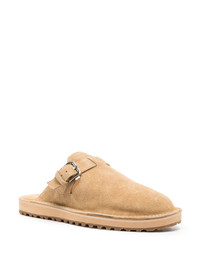 decorative-buckle leather slides Highlights - Beige - Leather - Decorative buckle detail - Round toe - Slip-on style - Branded footbed - Flat rubber sole Imported Composition Sole: Rubber 100% Outer: Leather 100% Lining: Leather 100% SIZE & FIT Measurement Sole height 0.98 in(2.5 cm)