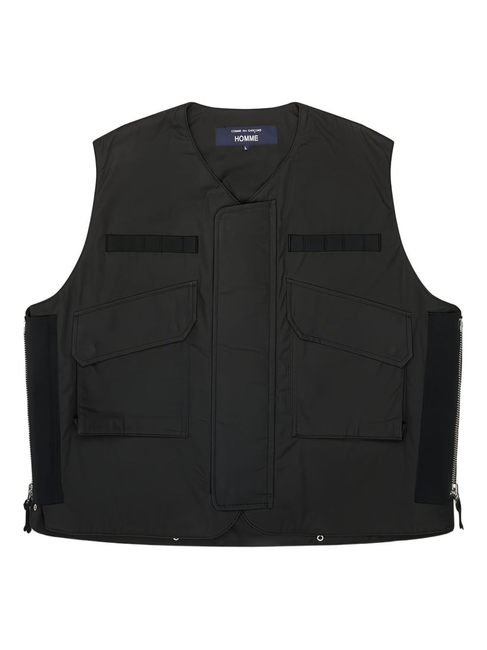 flap-pocket gilet Highlights - Black - V-neck - Front pockets - Zip detail - Sleeveless Imported Composition Cotton 100% Washing instructions Read Manufacturer Guidelines