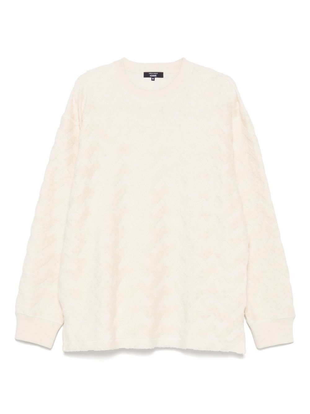 jacquard sweatshirt Highlights - Light beige - Crew neck - Long sleeves - Ribbed cuffs and hem Imported Composition Cotton 100% SIZE & FIT Model measurements Height 6 ft 1 in(1.86 m) Bust/Chest 37.4 in(95 cm) Hips 36.22 in(92 cm) Waist 29.52 in(75 cm) FittingInformation Designed for a relaxed fit, this piece allows for comfort and movement when worn Made with a midweight knit, this piece offers some stretch
