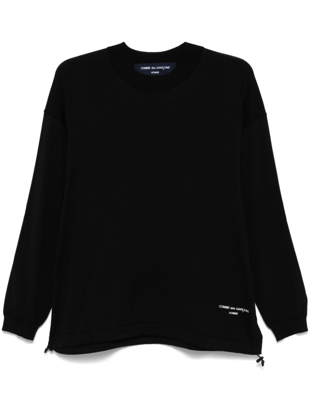 logo-embroidered sweater Highlights - Black - Knitted construction - Embroidered logo to the side - Crew neck - Drop shoulder - Long sleeves - Drawstring hem Imported Composition Polyester 70%, Wool 30% Washing instructions Dry Clean Only