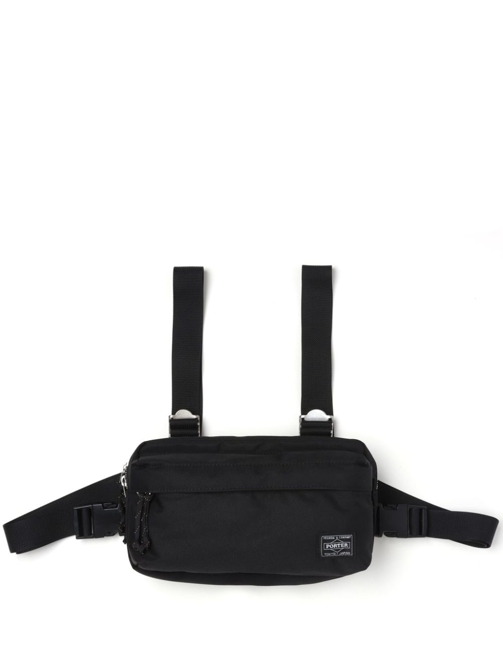 x Porter logo-patch chest bag Highlights - Black - Silver-tone hardware - Logo patch to the front - Top zip fastening - Buckle fastening - Adjustable shoulder straps - Front zip-fastening pocket - Main compartment Imported Composition Outer: Polyester 100% SIZE & FIT Measurement STRAP 335.82 in(853 cm) DEPTH 2.75 in(7 cm) WIDTH 8.66 in(22 cm) HEIGHT 4.72 in(12 cm)