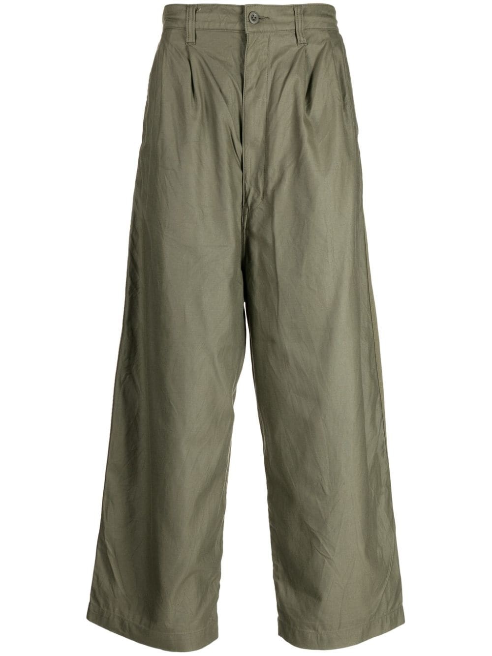 pleated cotton cropped trousers Highlights - Khaki - Cotton - Pleat detailing - Cropped wide leg - Concealed fly and button fastening - Two side slit pockets - Straight hem Imported Composition Cotton 100% Washing instructions Machine Wash