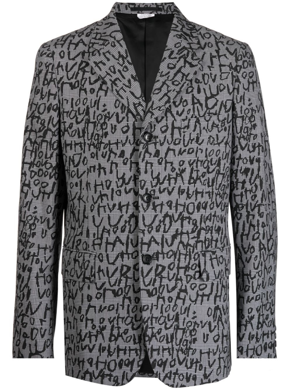 abstract-pattern print notched-lapels blazer Highlights - Ash grey/black - Wool blend - Abstract pattern print - Check pattern - Notched lapels - Front button fastening - Long sleeves - Buttoned-cuff sleeves - Straight hem Imported Composition Lining: Cupro 100% Wool 51%, Polyester 49% SIZE & FIT Model measurements Height 5 ft 10 in(1.78 m) Bust/Chest 33.85 in(86 cm) Hips 33.85 in(86 cm) Waist 24.01 in(61 cm) FittingInformation Designed to be unstructured, offering a loose fit throughout The vented hem offers movement at the rear Made from a midweight non-stretch fabric This piece fits true to size – take your usual size Washing instructions Dry Clean Only