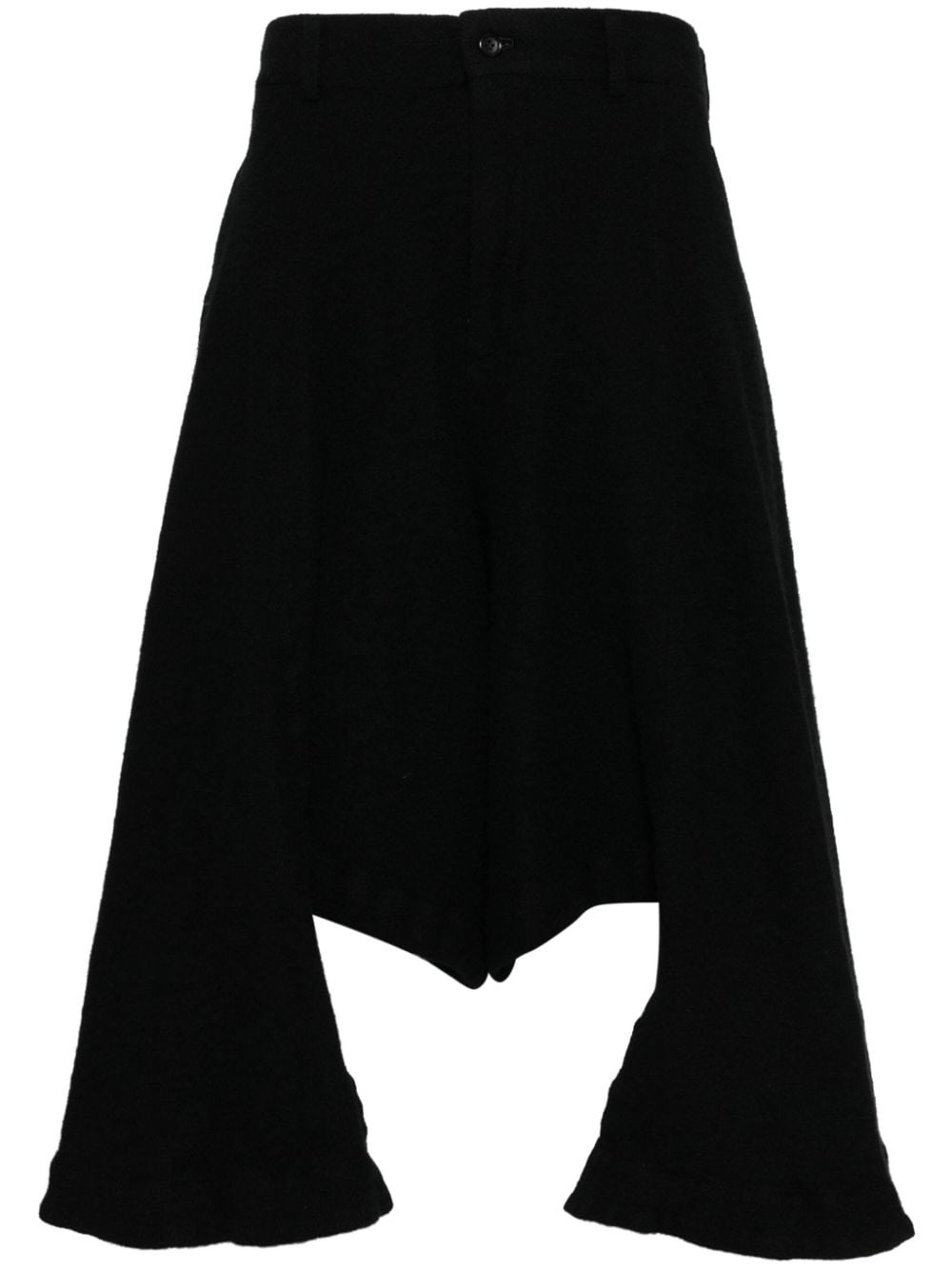 asymmetric shorts Highlights - Black - Wool blend - Front button and zip fastening - Belt loops - Two side inset pockets - Rear welt pocket - Rear button-fastening pocket - Asymmetric hem Imported Composition Wool 90%, Nylon 10% SIZE & FIT Model measurements Height 6 ft 2 in(1.87 m) Bust/Chest 33.07 in(84 cm) Hips 35.43 in(90 cm) Waist 26.77 in(68 cm) FittingInformation Designed with a dropped crotch, offering a loose and relaxed fit Made from a heavyweight non-stretch fabric