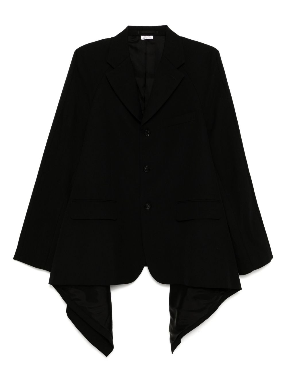 asymmetrical hem blazer Highlights - Black - Notched lapels - Single-breasted front - Dual front pockets - Long sleeves Imported Composition Lining: Cupro 100% Outer: Wool 100% SIZE & FIT Model measurements Height 6 ft 2 in(1.87 m) Bust/Chest 33.07 in(84 cm) Hips 35.43 in(90 cm) Waist 26.77 in(68 cm) Washing instructions Read Manufacturer Guidelines