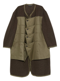 button-up padded coat Highlights - Khaki green - Panelled design - Front button fastening - Round neck - Long sleeves Imported Composition Cotton 100%, Wool 90%, Nylon 10% Washing instructions Read Manufacturer Guidelines