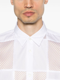 check-pattern shirt Highlights - White - Front button fastening - Chest patch pocket - Buttoned-cuff sleeves - Openwork areas Imported Composition Cotton 100%, Polyester 100% SIZE & FIT Model measurements Height 6 ft 1 in(1.86 m) Bust/Chest 37.4 in(95 cm) Hips 36.22 in(92 cm) Waist 29.52 in(75 cm) FittingInformation Designed to be unstructured, offering a loose fit throughout Made from a midweight non-stretch fabric