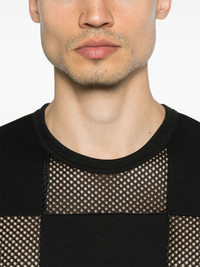 check-pattern T-shirt Highlights - Black - Crew neck - Short sleeves - Openwork areas Imported Composition Polyester 100% SIZE & FIT Model measurements Height 6 ft 1 in(1.86 m) Bust/Chest 37.4 in(95 cm) Hips 36.22 in(92 cm) Waist 29.52 in(75 cm) FittingInformation Designed for a relaxed fit, this piece allows for comfort and movement when worn Made from a midweight non-stretch fabric, this piece offers minimal elasticity when worn
