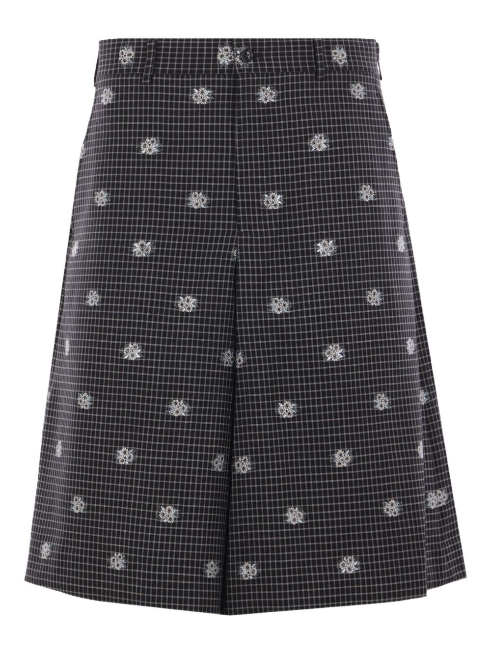 check-print shorts Highlights - Black - Front button and zip fastening - Belt loops - Two side slash pockets - Floral embroidery Imported Composition Outer: Wool 56%, Cotton 42%, Polyester 2% Lining: Cupro 100%