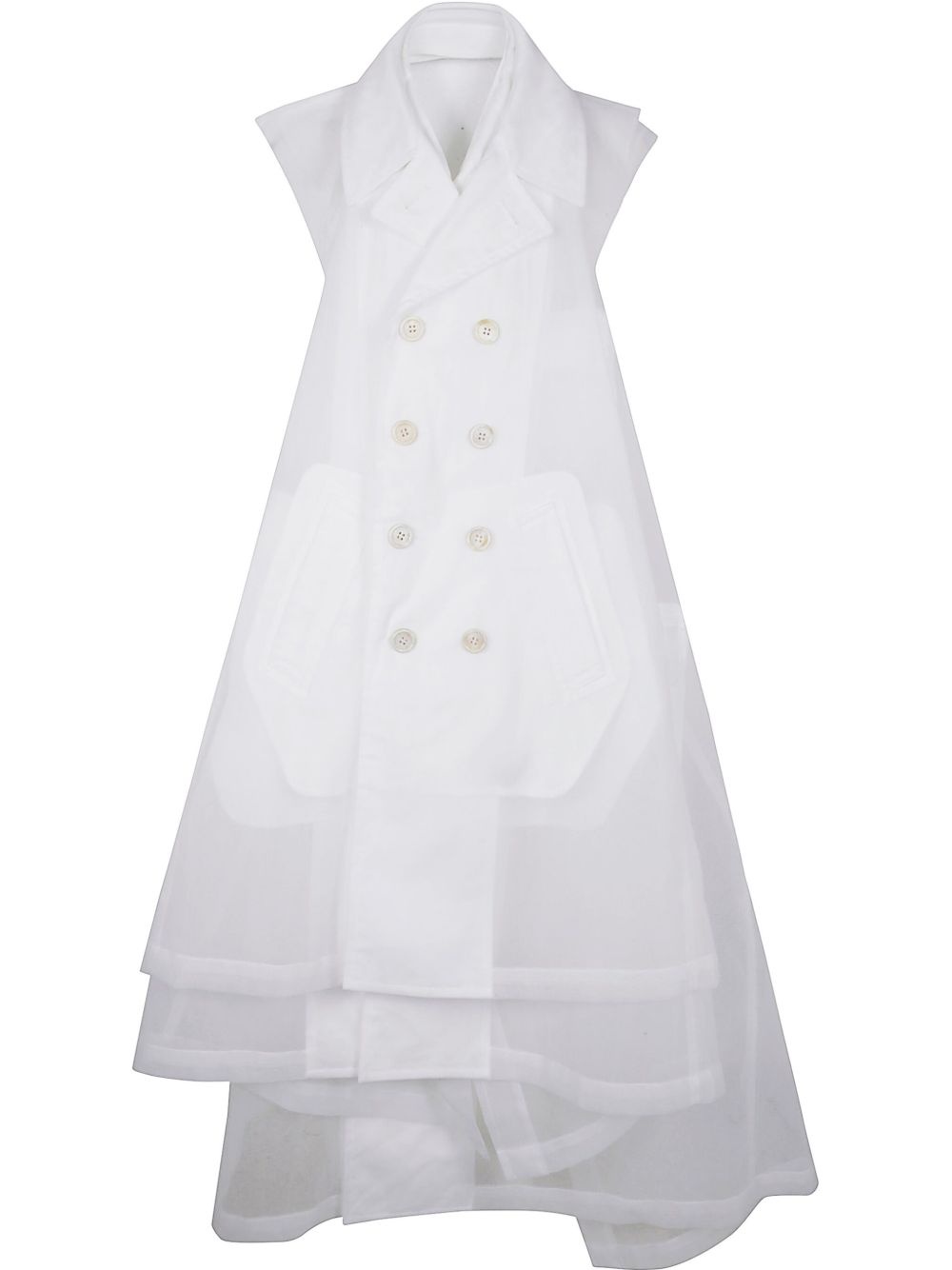 double-breasted coat Highlights - White - Double-breasted button fastening - Sleeveless - Flared - Layered design Imported Composition Nylon 100%