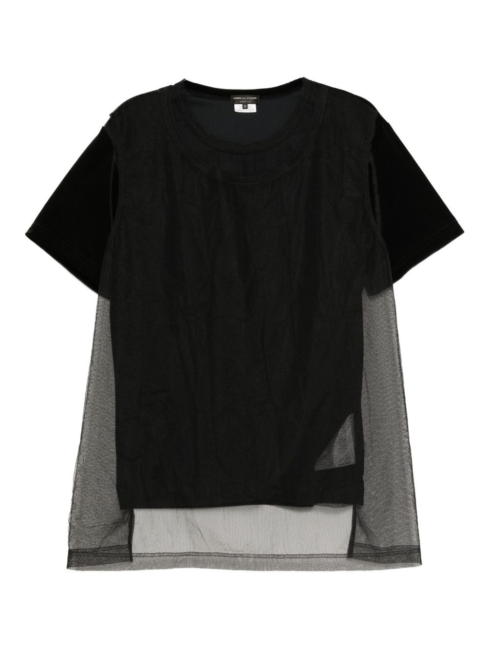 double-layer T-shirt Highlights - Black - Short sleeves - Crew neck - High-low hem Imported Composition Triacetate 68%, Polyester 32% SIZE & FIT Model measurements Height 6 ft 2 in(1.87 m) Bust/Chest 33.07 in(84 cm) Hips 35.43 in(90 cm) Waist 26.77 in(68 cm) FittingInformation Designed for a regular fit allowing for a comfortably loose fit throughout the body Made from a midweight non-stretch fabric Washing instructions Hand Wash
