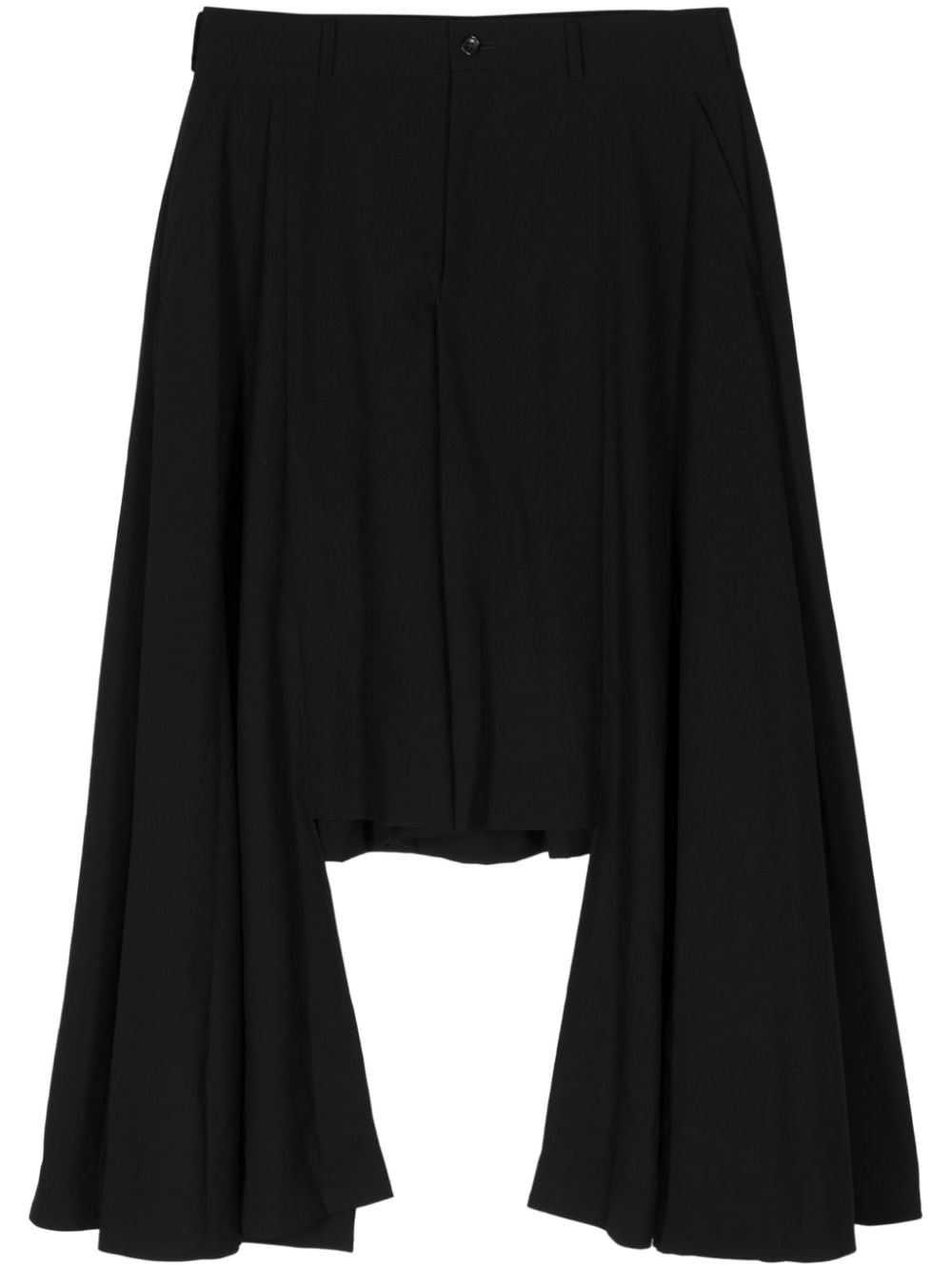 drop-crotch trim trousers Highlights - Black - Wool - Mid-rise - Front button fastening - Ruffled trim - Drop crotch - Two side slit pockets - Rear flap pocket - Rear welt pocket - Cropped leg Imported Composition Wool 100%