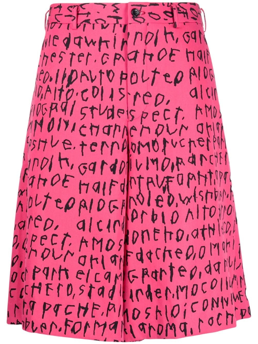 graphic-print wool shorts Highlights - Fuchsia pink - Wool - All-over graphic print - Slip pockets to the sides - Front button and zip fastening - Belt loops - Rear flap pocket - Rear welt pocket - Knee-length - Straight hem Imported Composition Lining: Cupro 100% Outer: Wool 100% SIZE & FIT Model measurements Height 6 ft 2 in(1.89 m) Bust/Chest 37.4 in(95 cm) Hips 36.61 in(93 cm) Waist 28.34 in(72 cm) Washing instructions Dry Clean Only