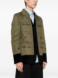 layered blazer Highlights - Khaki green - Front button fastening - Four front flap pockets - Buttoned cuffs - Rear slit Imported Composition Lining: Cupro 100% Outer: Rayon 70%, Polyester 30% SIZE & FIT Model measurements Height 6 ft 2 in(1.87 m) Bust/Chest 33.07 in(84 cm) Hips 35.43 in(90 cm) Waist 26.77 in(68 cm) FittingInformation Designed to be unstructured, offering a loose fit throughout The internal shoulder pads offer a structured shape Made from a midweight non-stretch fabric This piece fits small – take one size up Washing instructions Dry Clean Only