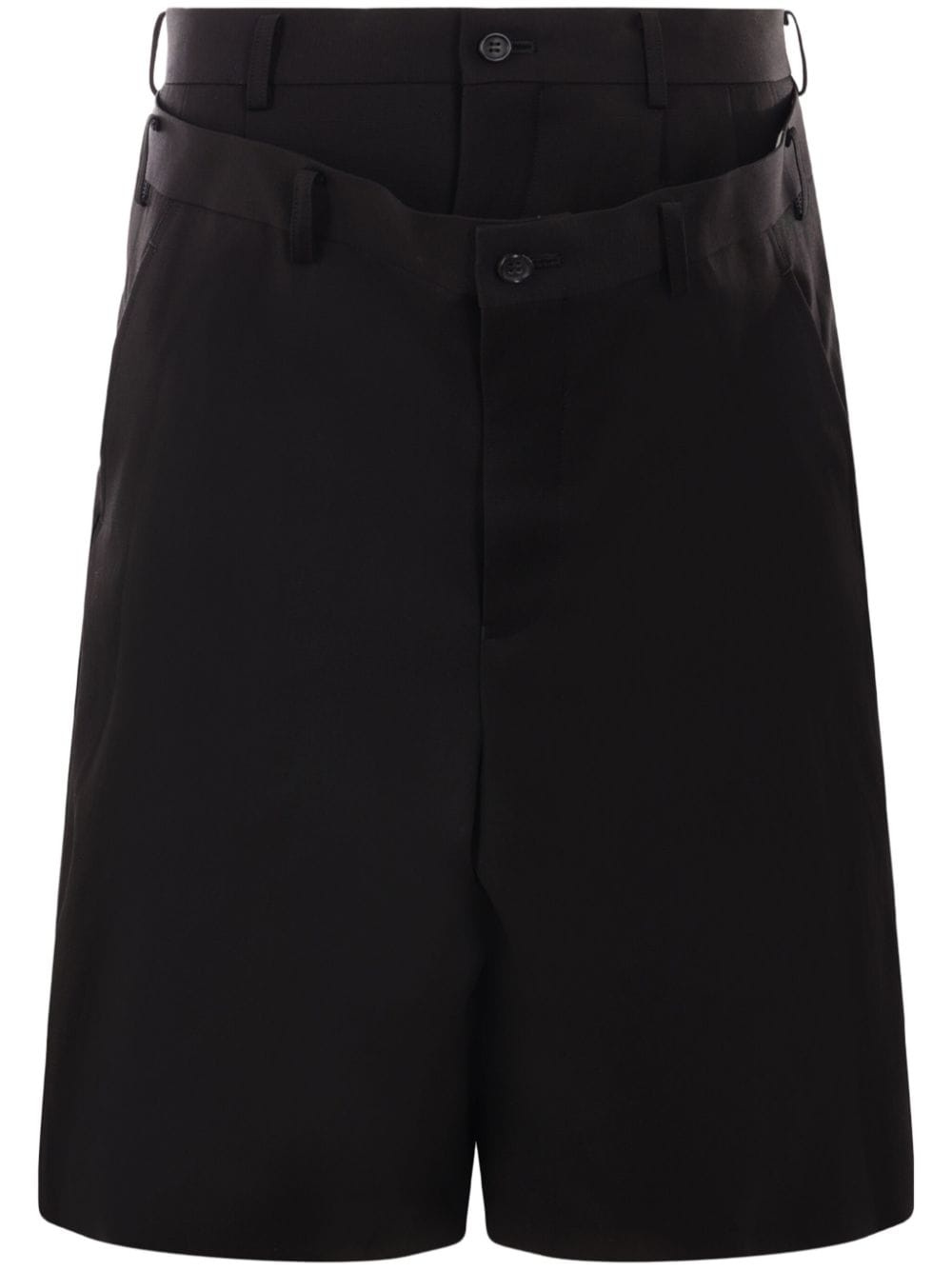 layered tailored shorts Highlights - Black - Rayon-linen blend - Layered design - Tailored cut - Concealed fly and button fastening - Belt loops - Two diagonal pockets to the sides - Rear welt pocket - Rear button-fastening pocket - Straight hem Imported Composition Lining: Cupro 100% Outer: Rayon 85%, Linen/Flax 15%