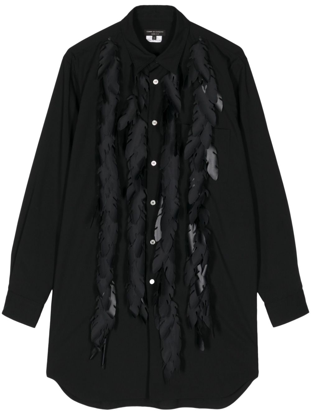 leaf-applique long-sleeve shirt Highlights - Black - Leaf applique - Side patch pocket - Classic collar - Long sleeves - Buttoned-cuff sleeves - Curved hem Imported Composition Polyester 100% Trims: Nylon 100%