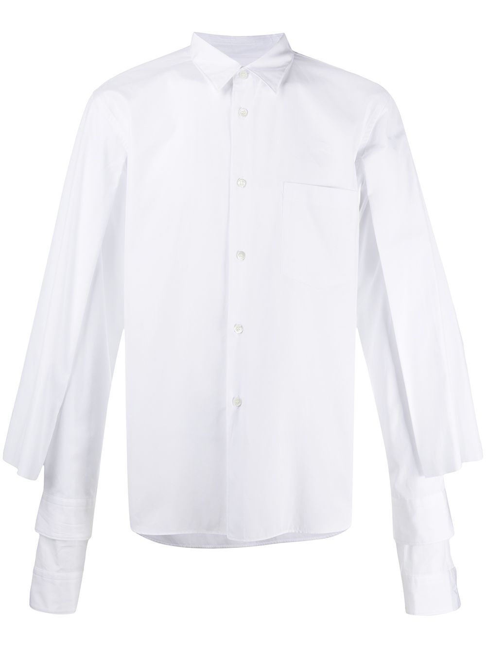 long-sleeve cotton shirt white cotton classic collar front button fastening front pouch pocket curved hem Imported Composition Cotton 100% SIZE & FIT Model measurements Height 6 ft 2 in(1.89 m) Bust/Chest 37.79 in(96 cm) Hips 37 in(94 cm) Waist 29.92 in(76 cm) FittingInformation This piece fits true to size. We recommend you get your regular size Cut for a loose fit Made with a mid-weight non-stretch fabric Washing instructions Hand Wash