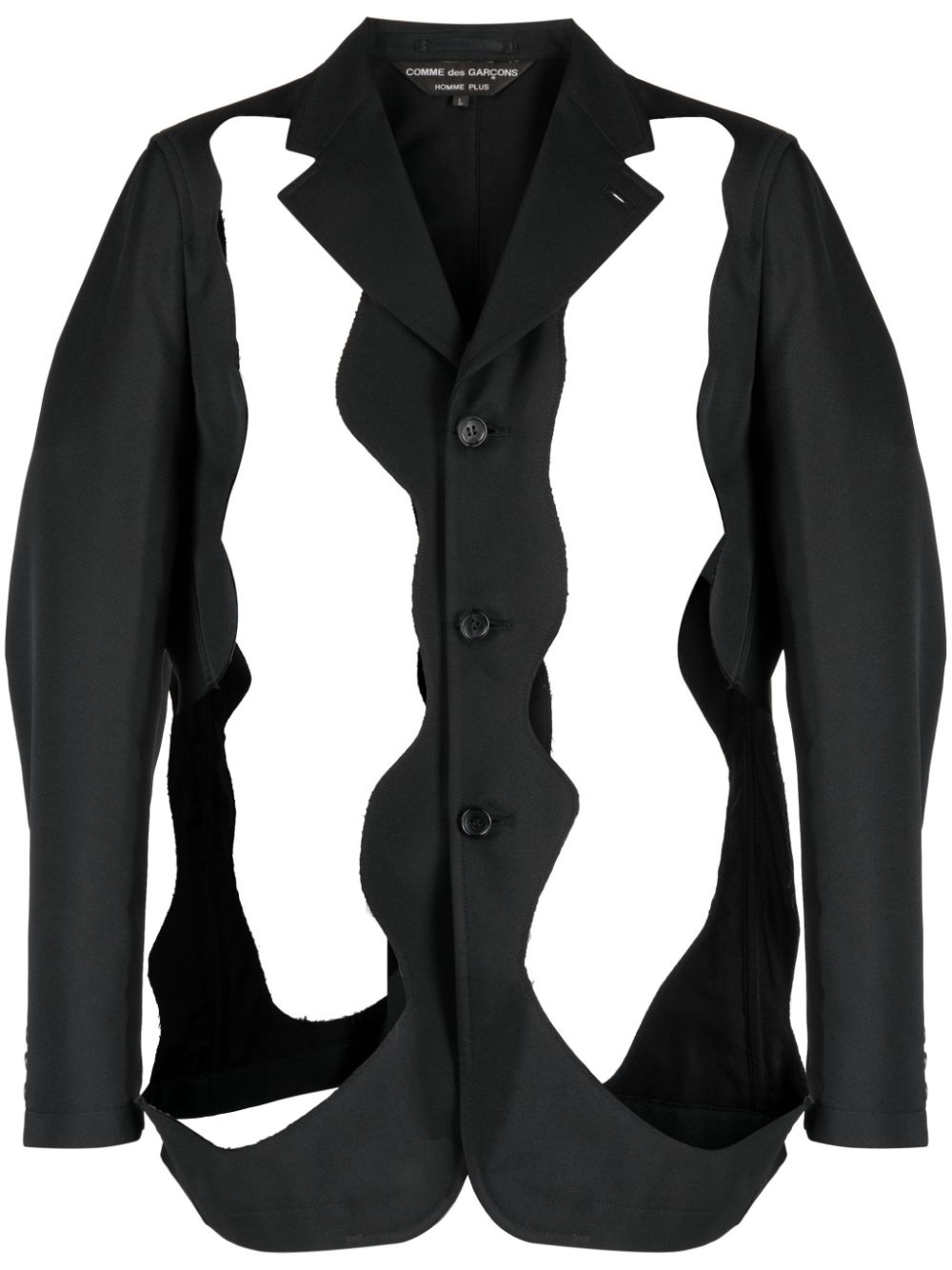 notched-lapels cut-out detailing blazer Highlights - Black - Cut-out detailing - Notched lapels - Front button fastening - Buttoned-cuff sleeves - Straight hem Imported Composition Polyester 100% SIZE & FIT Model measurements Height 5 ft 10 in(1.78 m) Bust/Chest 33.85 in(86 cm) Hips 33.85 in(86 cm) Waist 24.01 in(61 cm) FittingInformation Designed to be unstructured, offering a loose fit throughout Made from a midweight non-stretch fabric This piece fits true to size – take your usual size