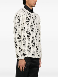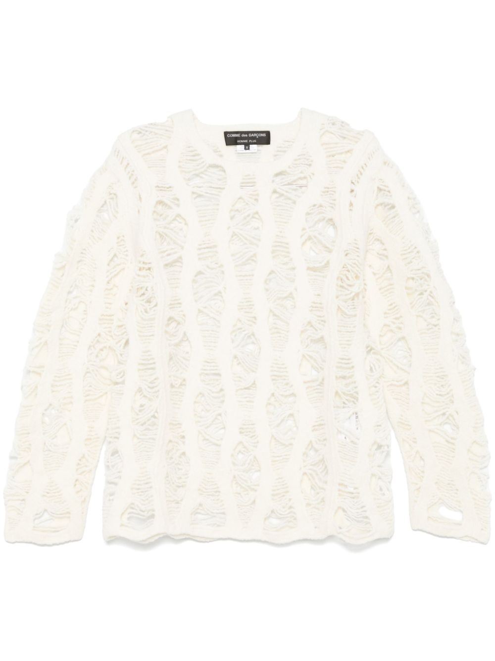 openwork sweater Highlights - Cream white - Crew neck - Long sleeves - Straight hem Imported Composition Wool 100% SIZE & FIT Model measurements Height 6 ft 2 in(1.88 m) Bust/Chest 36.61 in(93 cm) Hips 36.61 in(93 cm) Waist 29.92 in(76 cm) FittingInformation Designed for a relaxed fit, this piece allows for comfort and movement when worn Made with a midweight knit, this piece offers some stretch