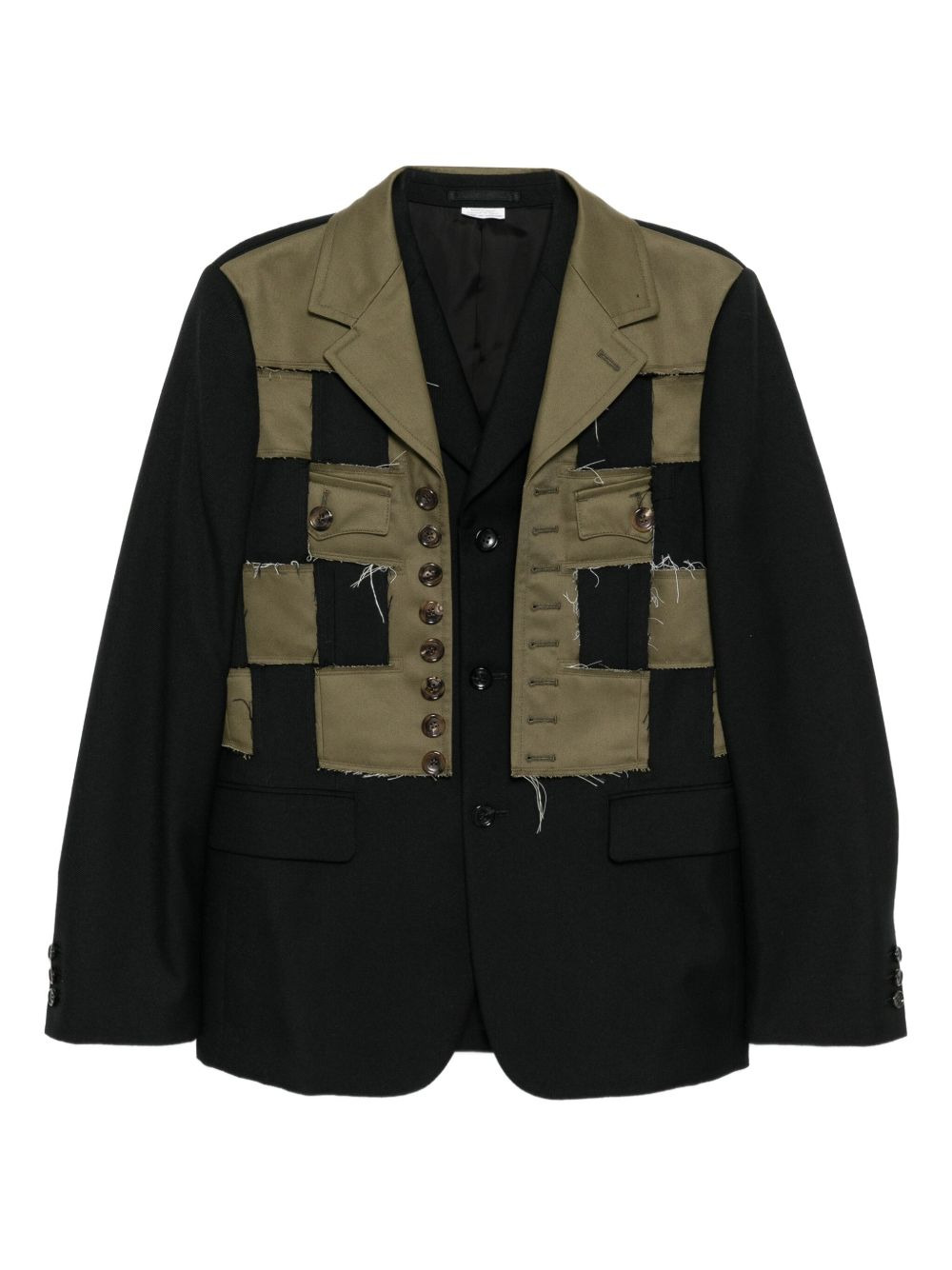 patchwork blazer Highlights - Khaki green - Front button fastening - Ticket pocket - Buttoned cuffs Imported Composition Outer: Wool 100% Cotton 100% Lining: Cupro 100% SIZE & FIT Model measurements Height 6 ft 2 in(1.87 m) Bust/Chest 33.07 in(84 cm) Hips 35.43 in(90 cm) Waist 26.77 in(68 cm) FittingInformation Designed for a slim fit, offering a comfortable fit that sits just away from the body The vented hem offers movement at the rear Made from a midweight non-stretch fabric Washing instructions Dry Clean Only