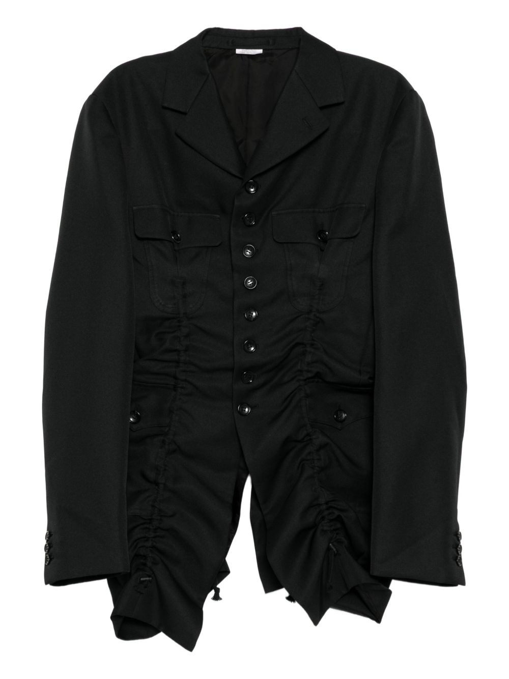 ruched-detail jacket Highlights - Black - Front button fastening - Four front flap pockets - Buttoned-cuff sleeves Imported Composition Lining: Cupro 100% Outer: Polyester 100% SIZE & FIT Model measurements Height 6 ft 2 in(1.87 m) Bust/Chest 33.07 in(84 cm) Hips 35.43 in(90 cm) Waist 26.77 in(68 cm) FittingInformation Designed for a slim fit, offering a comfortable fit that sits just away from the body The adjustable drawstring means that you can adjust this piece’s fit to suit your comfort and preference Made from a midweight non-stretch fabric Washing instructions Dry Clean Only