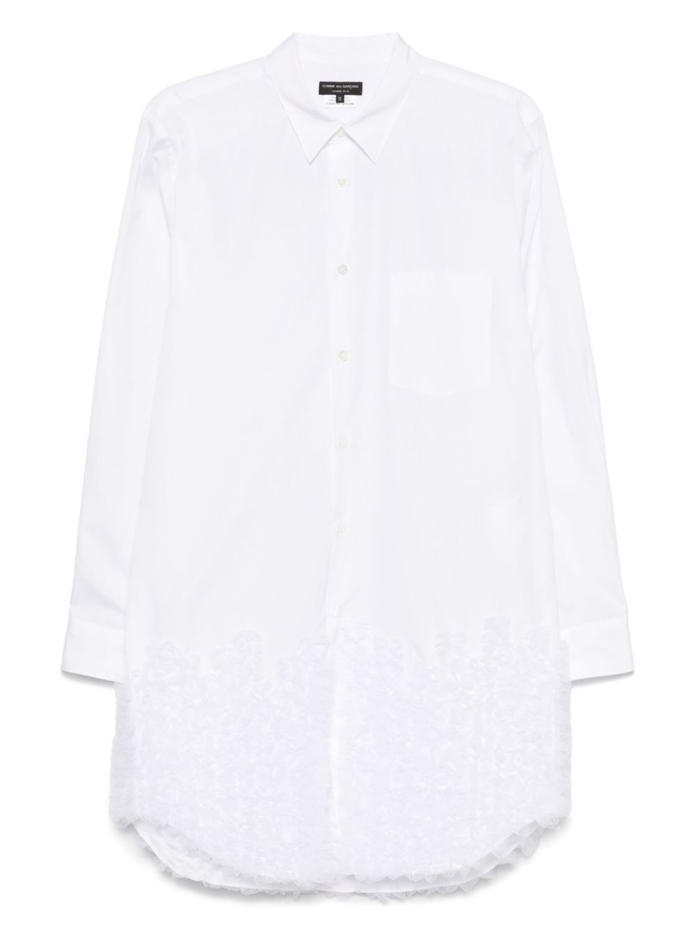 ruffled shirt Highlights - White - Front button fastening - Buttoned cuffs - Chest patch pocket - Long sleeves Imported Composition Cotton 100%, Nylon 100% SIZE & FIT Model measurements Height 6 ft 2 in(1.87 m) Bust/Chest 36.22 in(92 cm) Hips 37 in(94 cm) Waist 27.95 in(71 cm) FittingInformation Designed for a regular fit, allowing for a comfortably loose fit throughout the body Made from a midweight non-stretch fabric