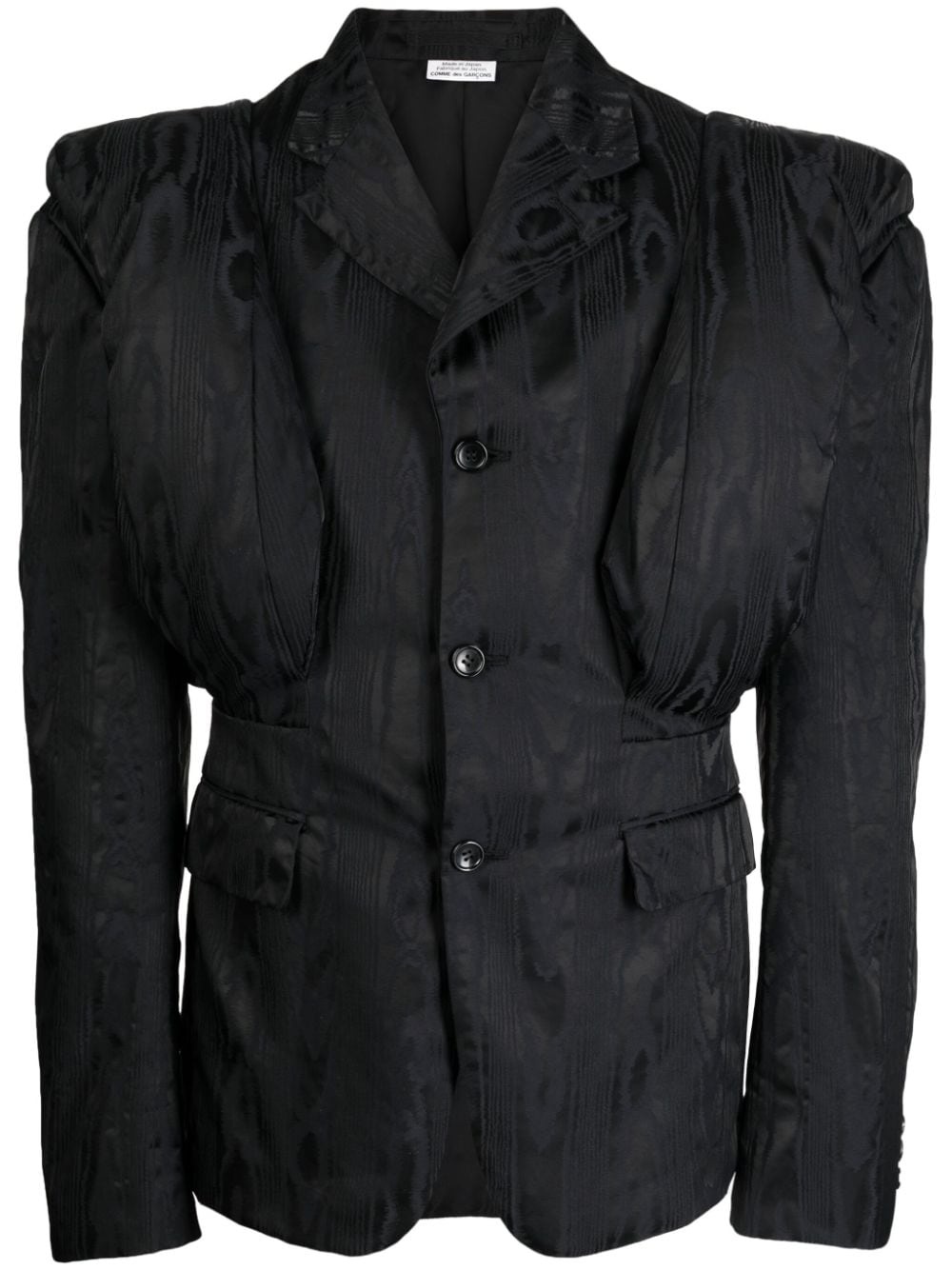 striped shoulder-pads blazer Highlights - Black - Padded design - Vertical stripe pattern - Shoulder pads - Notched collar - Front button fastening - Long sleeves - Buttoned cuffs - Fitted waistline - Two front flap pockets - Straight hem Imported Composition Lining: Cupro 100% Filling: Polyester 100% Outer: Nylon 100% SIZE & FIT Model measurements Height 6 ft 2 in(1.87 m) Bust/Chest 34.25 in(87 cm) Hips 36.22 in(92 cm) Waist 29.52 in(75 cm) FittingInformation Designed for a slim fit, offering a comfortable fit that sits just away from the body The internal shoulder pads offer a structured shape Made from a midweight non-stretch fabric This piece fits true to size – if you would prefer a looser fit to layer, take one size up