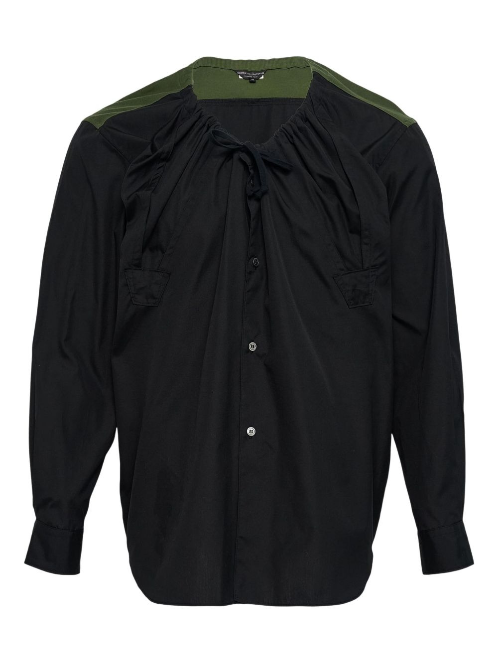 tie-neck two-tone shirt Highlights - Black - Contrasting panel - Tie detail - Button fastening - Long sleeves - Buttoned cuffs Imported Composition Cotton 100% Washing instructions Read Manufacturer Guidelines